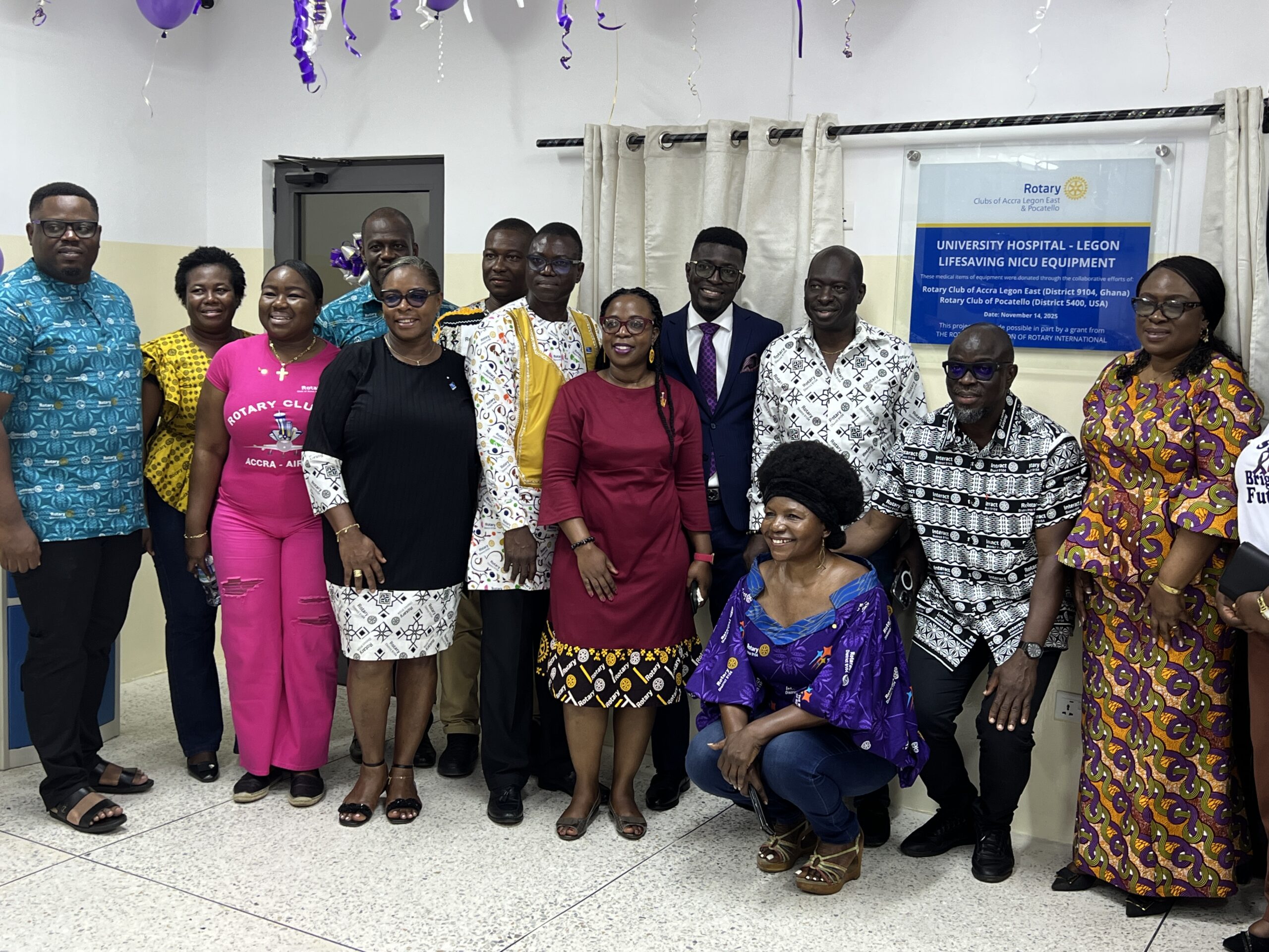 The Rotary Club of Accra Legon East, in partnership with the Rotary Club of Pocatello (USA) and The Rotary Foundation, successfully commissioned the final phase of their multi-year, life-saving project at the University of Ghana Hospital. The ceremony marked the official handover of state-of-the-art, ultra-modern equipment to the Neonatal Intensive Care Unit (NICU), cementing the unit’s status as fully functional and world-class.